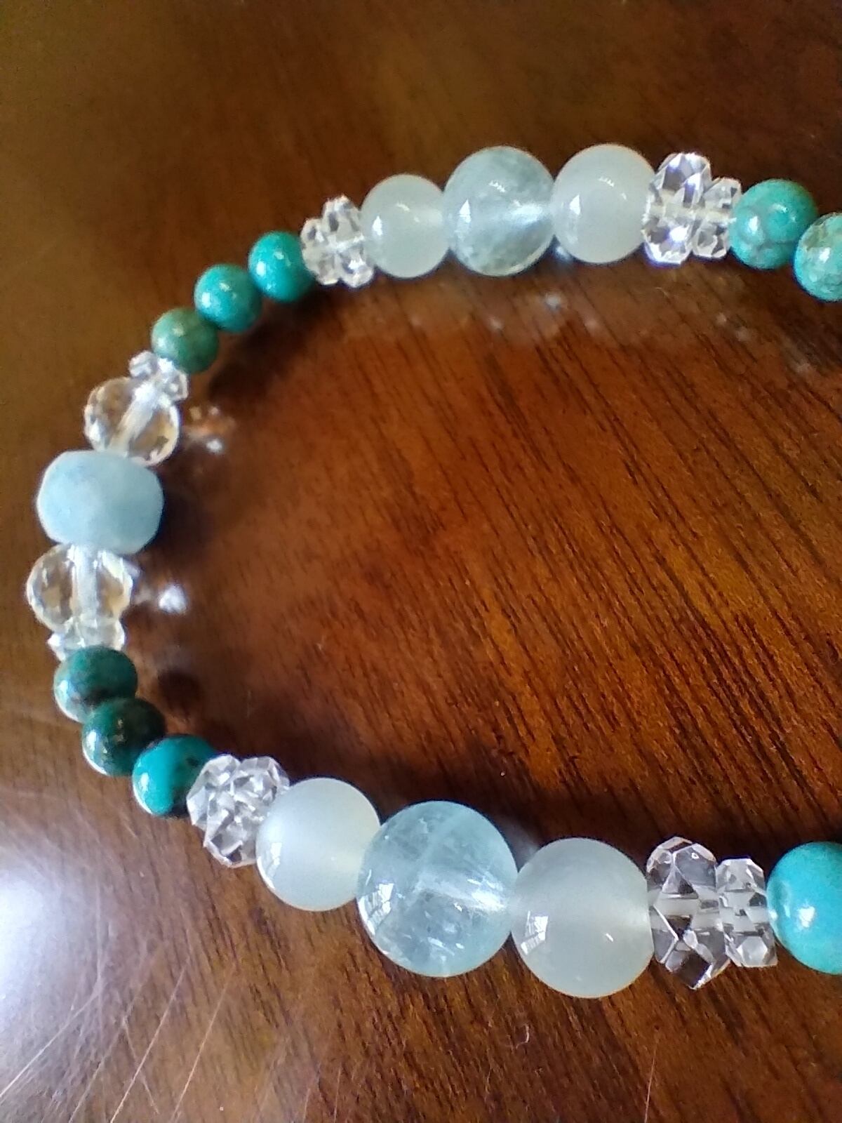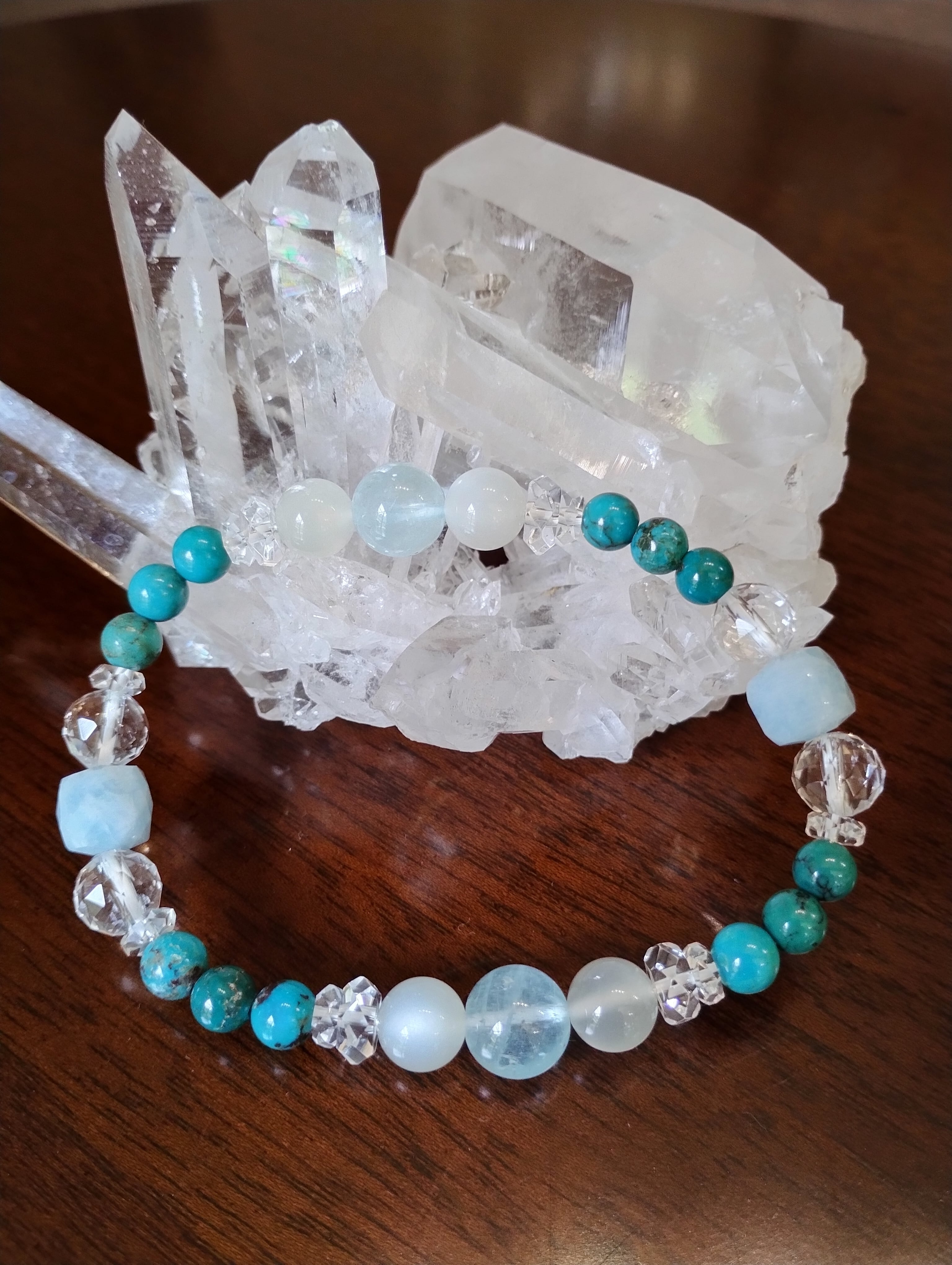 昼、夜、空、海、国内ならず世界中どこにいても同じ空の下で繋がって、どんな場所からも見守ってくれる、交通安全も含めた全ての旅のお守りの組み合わせのブレスレットです。